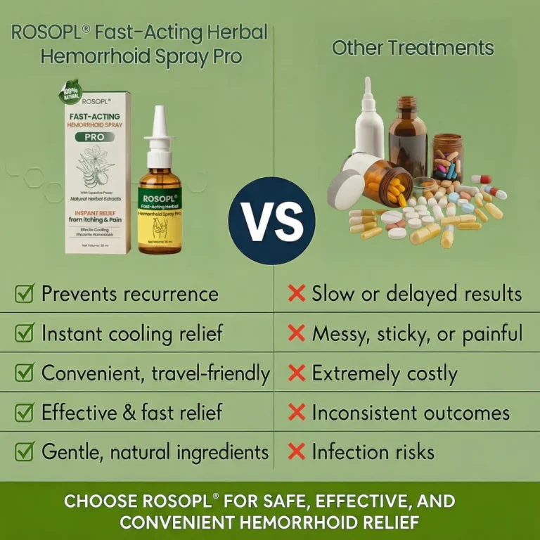 ROSOPL® Fast-Acting Herbal Hemorrhoid Spray Pro is the smarter alternative to conventional hemorrhoid creams and ointments. Designed with convenience and natural healing in mind, it combines trusted herbal ingredients with a hygienic, hands-free spray design. Whether you’re dealing with chronic discomfort or a sudden flare-up, ROSOPL® offers fast, soothing relief without the mess or harsh chemicals. It not only targets symptoms but supports long-term healing and prevention. For anyone looking for a gentle, effective, and practical solution—ROSOPL® is your answer.